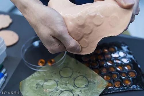 研究者开发的皮肤虚拟现实装置,包括将电能转化为振动的机械部件;封装在聚酰亚胺(PI)中的铜丝,具有可拉伸的弹簧式结构,将NFC环形天线、电阻器、电容器等器件连接在一起;无线控制系统夹在有机硅聚合物层之间,用于接收无线传输信号;最下面利用柔软的弹性层,无需胶带即可粘附到皮肤上。