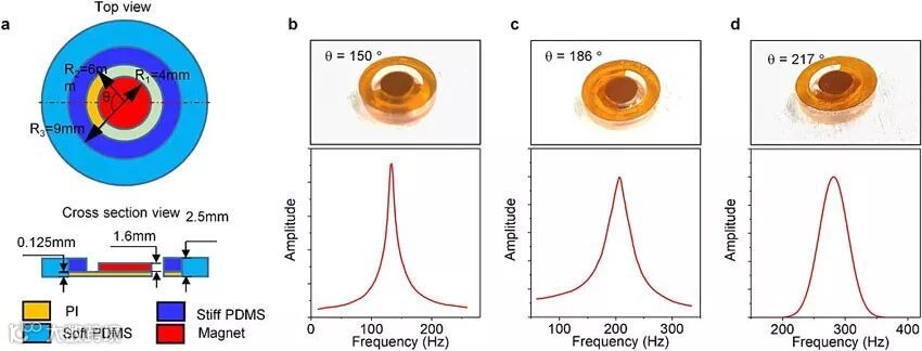 每个微型振动装置只有1.4克,直径12到18 mm、厚度2.5 mm。设计原理很简单,利用的就是基本的高中知识:当电流通过线圈时,磁铁在洛伦兹力的作用下完成机械振动,而调节狭缝的角度就可以改变谐振频率。考虑到人类皮肤触觉可以检测出几微米的振幅,未来微型振动装置的直径和厚度可以分别减少10倍和3倍。