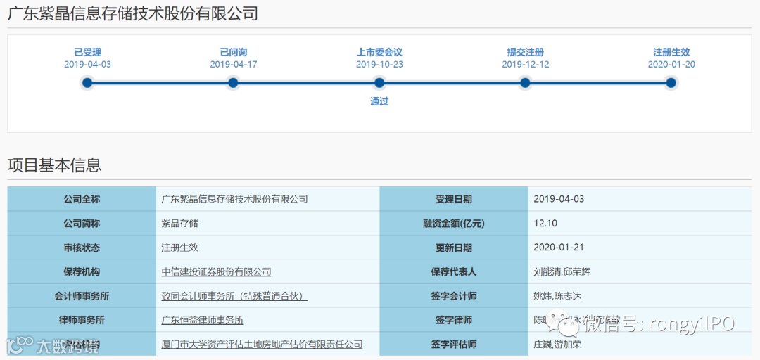 从紫晶存储自身方面来讲,根据上交所披露信息,紫晶存储虽然在目前400余家科创板注册企业中是第90家注册生效,时间相对较早,但申报注册时保荐机构中信建投进行8轮问询及意见回复,第一轮更是提出问询56个问题,并非常见。