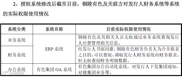 一、发行人使用的财务系统系由铜陵有色授权,铜陵有色作为该系统的日常维护方,负责系统的运行、维护及后续升级改造。发行人对于被授权财务系统拥有独立的账号及使用权限,并以发行人自身名义登录并使用系统,相关财务核算均由发行人独立进行审批。
