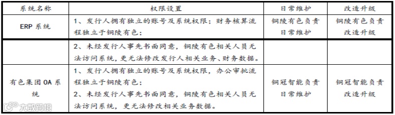 发行人在授权系统中的业务数据与铜陵有色及其他并表附属公司相互隔离、独立管理。针对业务数据的新建、变更及流转,发行人拥有独立的业务流程及审批流程管控。