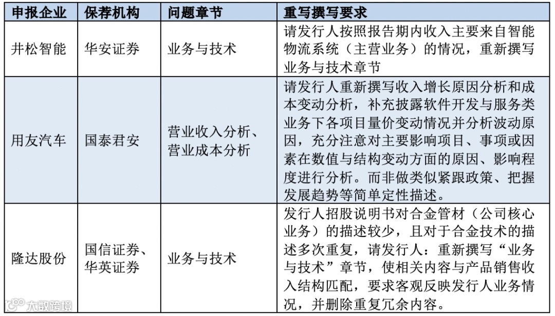 以上三家企业招股书被退回重写,可以总结为以下问题: