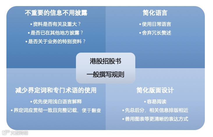2017年8月,关于招股书内容,联交所再提要求,首先建议就两个额外的上市文件章节设立页数上限,且明确指出若上市文件不够简洁、不着重披露重大资料,其上市申请可能会被暂停审理。
