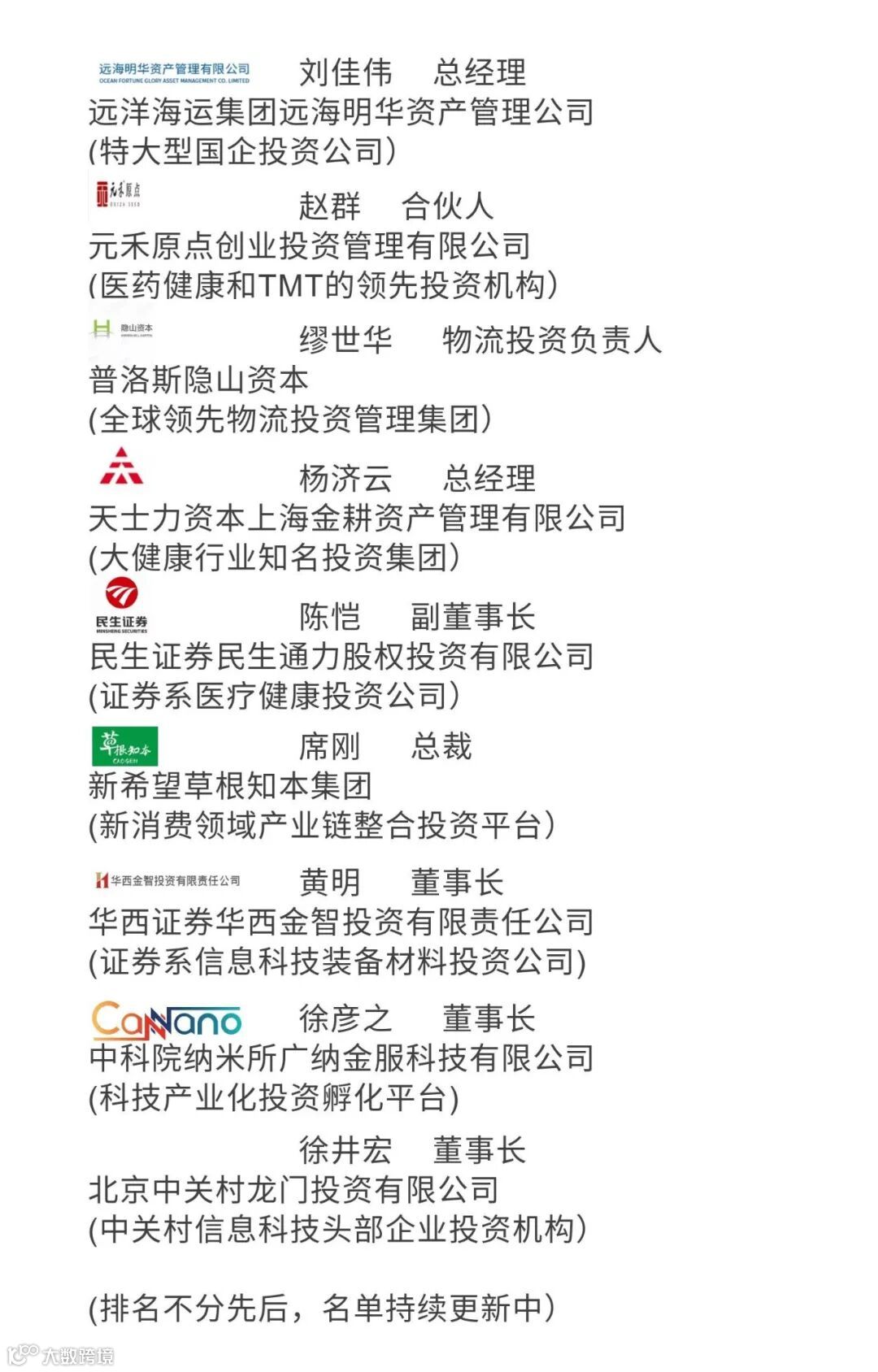 出席“IPO成长营”投资人名单