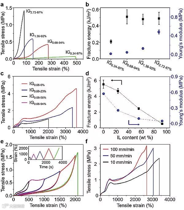 图3. 离子凝胶机械性能研究。图片来源:Mater. Horiz.