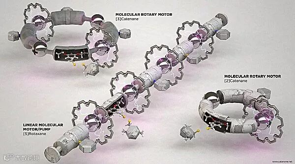 分子机器,类似于宏观概念上的机器,是指在分子级别可以通过能量转化实现某种特定功能的机器,也是构筑分子机器人(Molecular Robotics)的基础模块。分子机器的运转依赖于各组分之间的组装方式与相对运动,不同于人造机器依赖牛顿力学的基础原理,分子机器则需要以量子力学为参考标准,兼具自组装、准确可控、能量驱动选择范围广等多个优势。自从分子机器的概念提出以来,模仿宏观机器(Technomimetic)以合成更加复杂的分子机器以及模仿生物分子机器开发仿生分子机器(Biomimetic)一直是该领域的两大研究方向。2016年诺贝尔化学奖颁给了Jean-Pierre Sauvage、Sir J. Fraser Stoddart、Bennard L. Feringa三位科学家以表彰他们在分子机器领域的贡献,这同时也是对分子机器研究潜力的极大的认可。