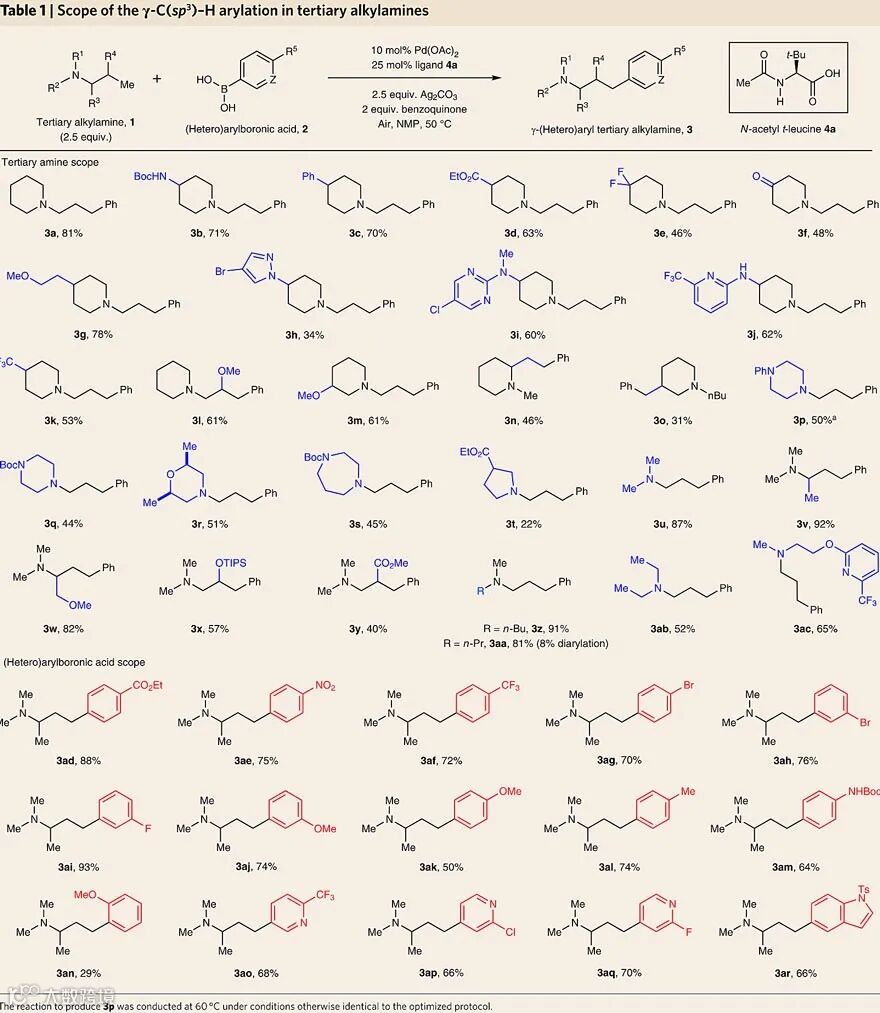 烷基叔胺γ-C(sp3)–H芳基化底物扩展。图片来源:Nat. Chem.