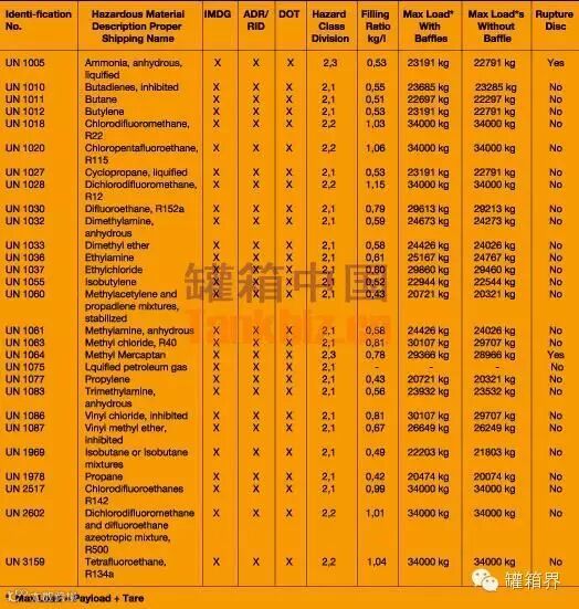 气体或是有固定充装率的,比如氨气Ammoniak,系数是0.53,那么如果我们用T50罐,24.5CBM的,那么最大装货率就是24.5*0.53=12.985kg.