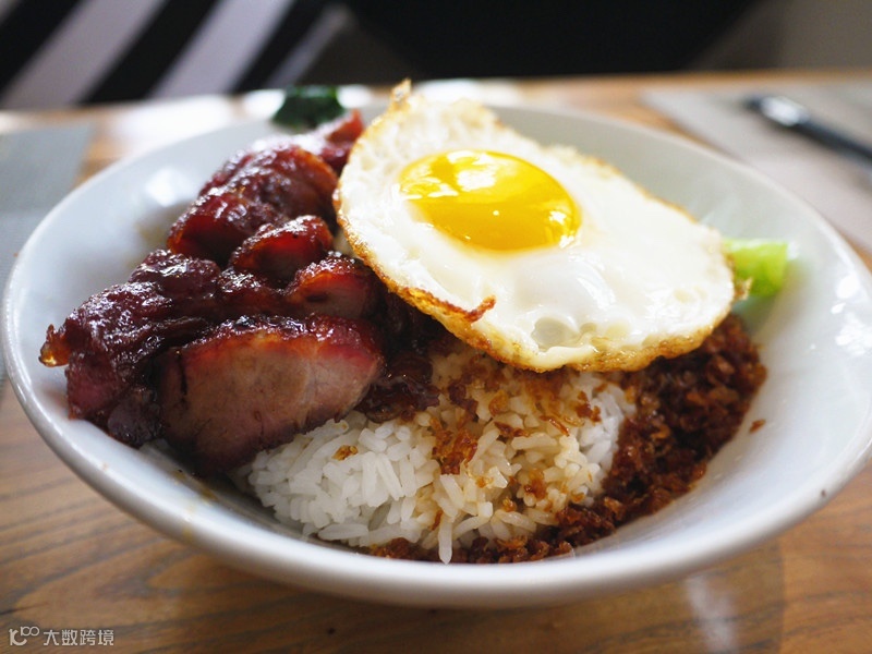 咬上一口,味道出来了,叉烧呼呼热,软嫩多汁,不像别家的又凉又柴。一打听,用了上等梅头肉,肥瘦相间,下酱料烹制5小时出炉。难怪了,要知道一头猪只有两条这样的肉呢,肉头细嫩,夹带“雪花”,热煮后化成油脂,拌入米饭油光铮亮。更妙的是,淋上去的秘制酱汁,香气袭人,细细一看,搁了油炸的洋葱末,真是把电影里的那碗饭还原到99%。