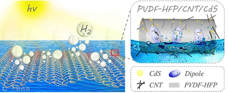 光催化技术由于其可利用取之不尽的太阳能分解水制备清洁高能量密度的可再能源氢气缓解能源危机而受到了广泛关注。然而,较低的量子效率效率限制了光催化技术的应用,其主要源于较低的太阳光利用率及载流子分离效率。那么,如何实现太阳光利用率和载流子分离效率的同时提升以显著提高光催化分解水制氢性能呢?近日,南京工业大学陆春华教授、寇佳慧教授和东南大学赵远锦教授(共同通讯作者)团队通过有效构筑热释电-光热-光催化复合微米纤维首次将红外光响应热释电内建电场引入到光催化反应中并显著提高光催化性能。