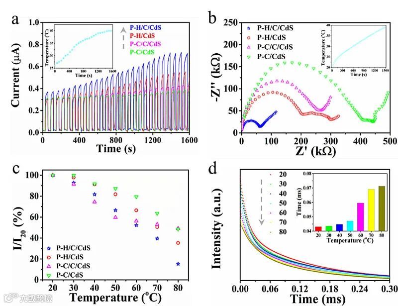 通过热释电输出测试、变温电化学测试及变温荧光表征提供了热释电电场通过有效促进载流子分离、加快载流子迁移速度及延长载流子寿命的方式增强光催化性能的直接实验证据。研究表明构筑的热释电内建电场对光生载流子的作用时效随着温度变化率的增大而增大。本工作通过有效利用红外光构筑热释电电场提供了一个提升光催化性能的新策略,推动光催化技术在解决能源危机及环境污染等领域的应用。