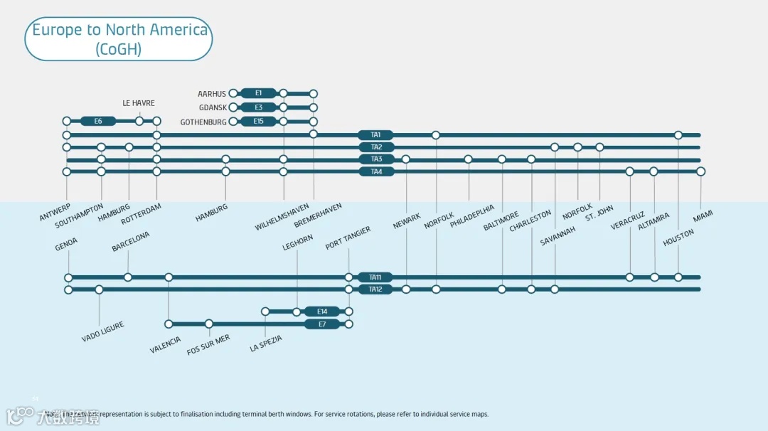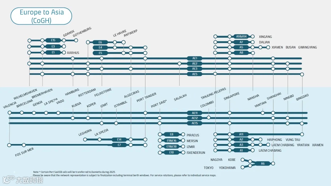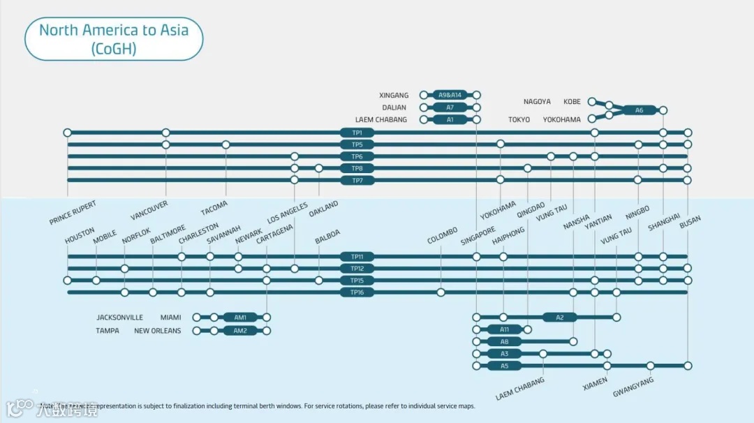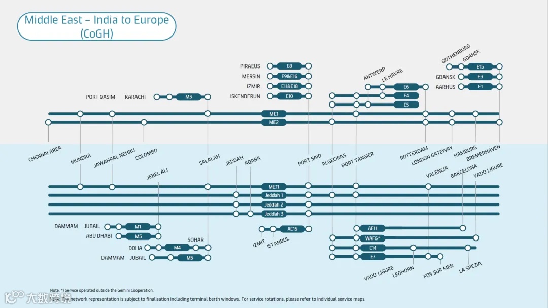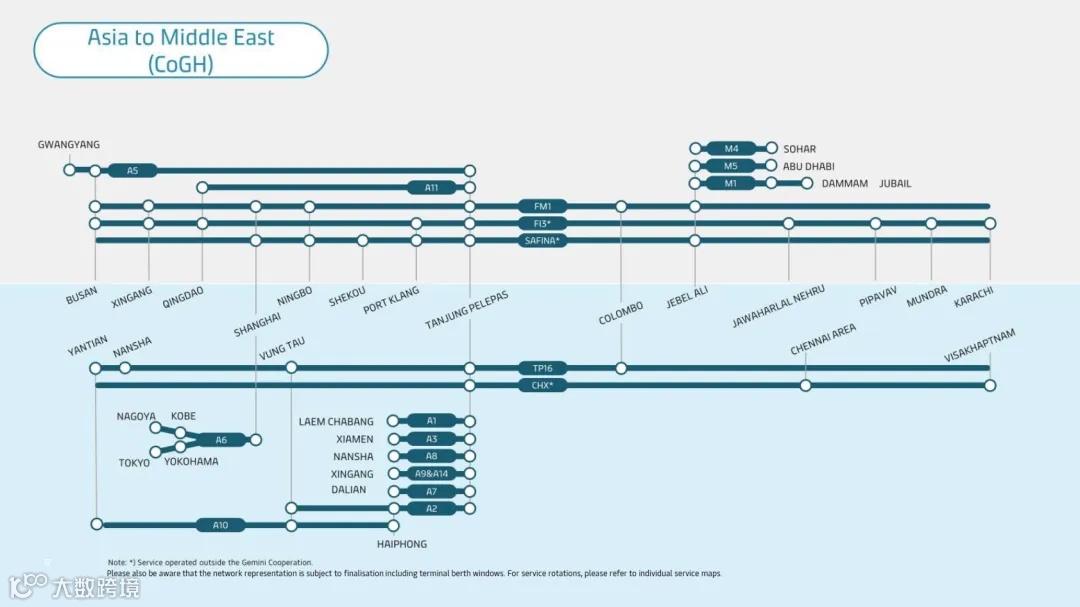 所有2025年2月1日前从亚洲(亚洲服务)和欧洲(跨大西洋服务)发出的货物,在完成航程前仍由2M联盟运输。自2025年2月1日起,所有去程货物将由“双子星”合作的船舶运输。