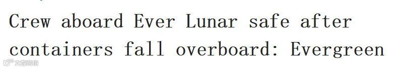 据 focustaiwan 报道,8 月 2 日,台湾最大集装箱船运公司 Evergreen Marine Corp.表示,前一天( 8 月 1 日)“Ever Lunar”号在秘鲁海岸附近有数十个集装箱落水,但船上所有船员均安全。