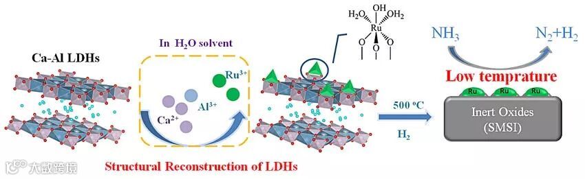 近日,武汉工程大学邓黎丹、邱心泓副教授课题组利用钙铝层状双金属氢氧化物在水中发生表面重构的过程来锚定Ru3+,并借助氢氧化物焙烧转化为氧化物的过程来构筑金属-载体强相互作用。相关工作发表在Chem. Commun.上。