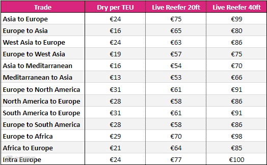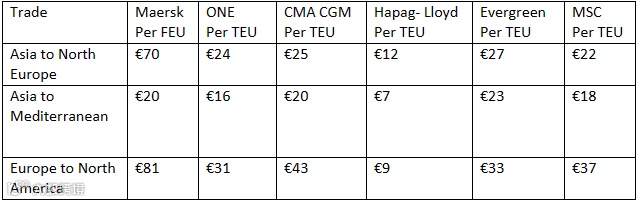 随着明年1月1日EU ETS生效期的迫近,航运公司的应对准备愈发紧迫。此前,马士基、赫伯罗特、达飞轮船先后公布了2024年预期EU ETS附加费的水平。以远东-北欧航线为例,单位TEU的附加费大多在10-30美金之间。