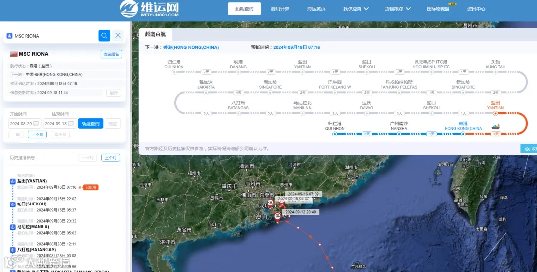 “MSC Riona”船舶实时动态查询