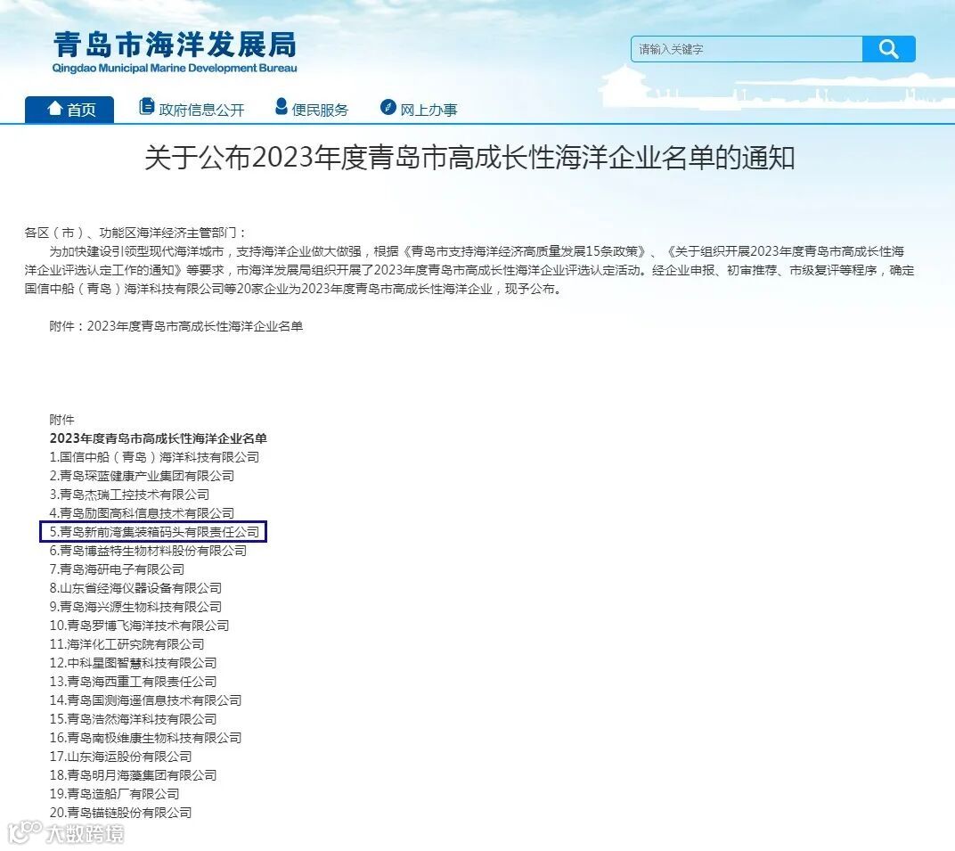 公布20家2023年度青岛市高成长性海洋企业