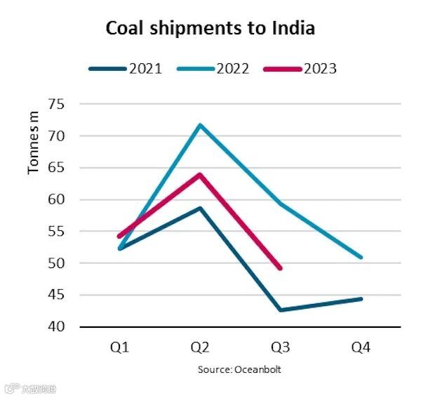 从2022年5月到8月,印度政府要求发电厂将至少10%的进口煤炭混合使用,以解决其发电厂的低库存和应对电力短缺问题。2023年1月至9月期间,进口要求降至6%,9月至明年3月期间再次降至4%。截至2023年9月底,库存极低的发电厂数量比一年前减少了25%。