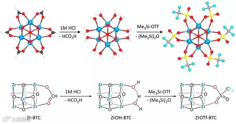 图2. 超强Lewis酸性MOF——ZrOTF-BTC的合成构筑