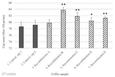 重组样品和对照样品的cup得分。图片来源:Food Chem.