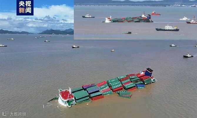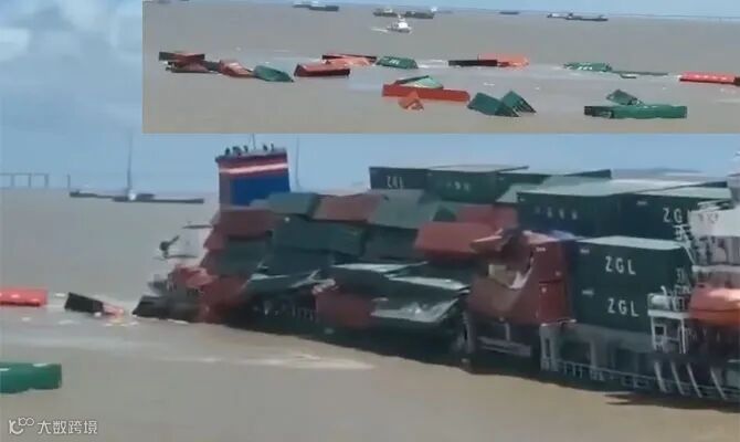 宁波海事局发布消息,7月17日10时16分左右,泉州籍集装箱船“新远隆6”轮在大黄蟒水域附近与宁波籍“港龙发展”轮发生擦碰。事故造成“新远隆6”轮船体进水倾斜,40余个集装箱落水,此前曾挂靠广州港和厦门港。