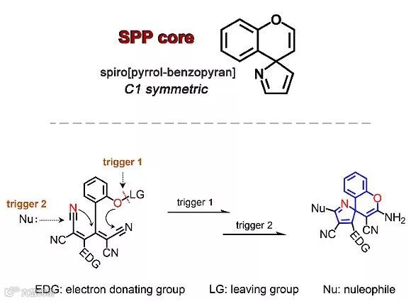 在此背景之下,澳门大学张宣军教授团队巧妙地设计反应路线(图1),获得了具备高不对称性(C1 点群)的手性螺旋分子骨架螺[吡咯-苯并吡喃](SPP)。与中科院福建物质结构研究所袁大强教授、王文经研究员合作通过单晶衍射确认了手性螺旋结构。随后将SPP为核心,连接具有检测功能的非手性基团吩噻嗪,提出了一种构建反应型手性探针的新策略(图2)。依托高不对称的手性核心,吩噻嗪部位与次氯酸反应后结构变化导致CD信号的反转,成功实现对次氯酸根的有效检测(图3)。实验结果显示探针对次氯酸具有高的灵敏度与选择性。该工作首次实现了反应型探针对活性过氧化物ROS的偏振光检测,该策略将大大扩展CD光谱在检测非手性物质方面的应用。