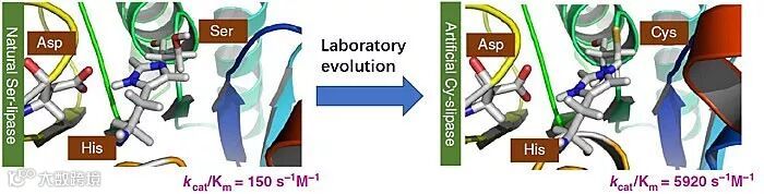 图1、通过定向进化将丝氨酸脂肪酶改造为高活性的半胱氨酸脂肪酶