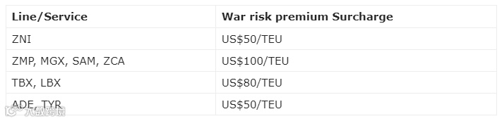 以色列集装箱运输公司以星 (ZIM) 也宣布收取额外费用。该公司在最新通知中表示:“鉴于战争局势,保险公司对所有停靠以色列港口的船只征收额外的战争险保险费,我们现在有义务支付这笔费用,以维持往返以色列的服务。”