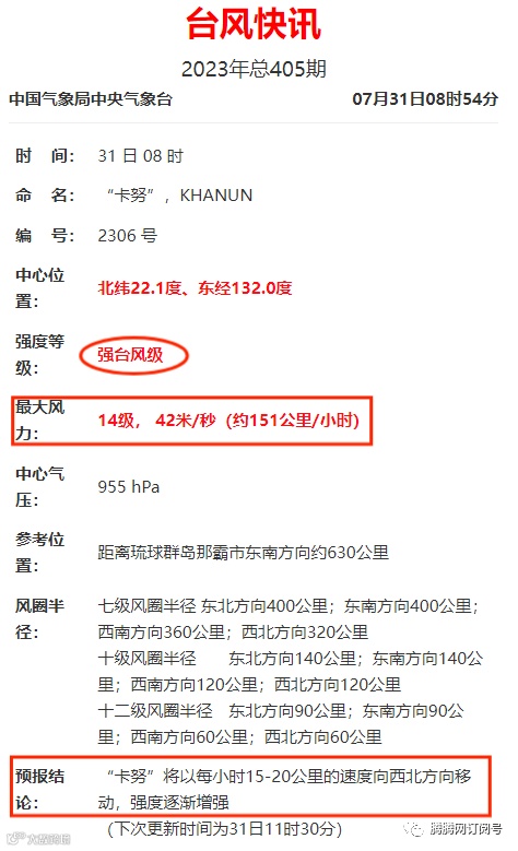 “卡努”最大可能在8月2日下午至夜间,登陆我国浙江沿海,登陆时强度较强,或以强台风或超强台风级别登陆。