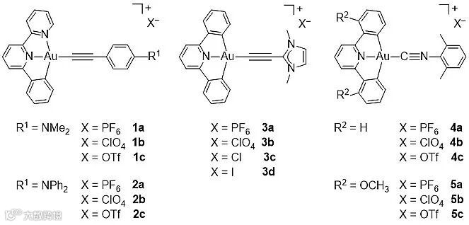 A:正一价AuI-AuI之间的弱相互作用已经进行了数十年的实验和理论研究。Pyykkö及其同事对AuI系统的工作表明,AuI-AuI吸引力主要来自色散力和相对论效应的共同作用(Chem. - Eur. J., 1997, 3, 1458)。与AuI中的d10-d10相互作用相比,对AuIII-AuIII(d8-d8)相互作用的研究非常少。AuIII的等电子PtII和PdII(d8-d8)在聚集态时会显示出特定的低能量电子跃迁,该现象是否能在AuIII配合物中出现仍然是一个悬而未决的问题。几十年来,平面四配位PtII化合物在超分子自组装,3MMLCT(金属-金属-配体电荷转移)激发态和光致发光等相关方面得到了广泛的研究,这些研究都与闭壳层PtII-PtII相互作用有关。最近的研究表明PdII配合物在聚集时也可以显示PtII-PtII相互作用和1/3MMLCT激发态。文献中曾报道过一系列基于钳型PtII配合物的p型空穴传输光响应半导体(Angew. Chem. Int. Ed., 2008, 47, 9895.)。由于AuIII离子具有更高的氧化还原电位并且比PtII离子更亲电,因此我们认为可以通过使用AuIII配合物作为结构单元,在自组装过程获得具有新功能的超分子材料。