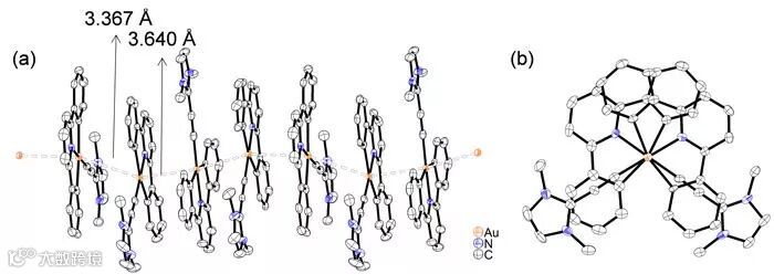 如图2所示,3d的晶体结构显示出Z字形Au-Au链结构,具有约3.367 Å的紧密Au-Au接触。