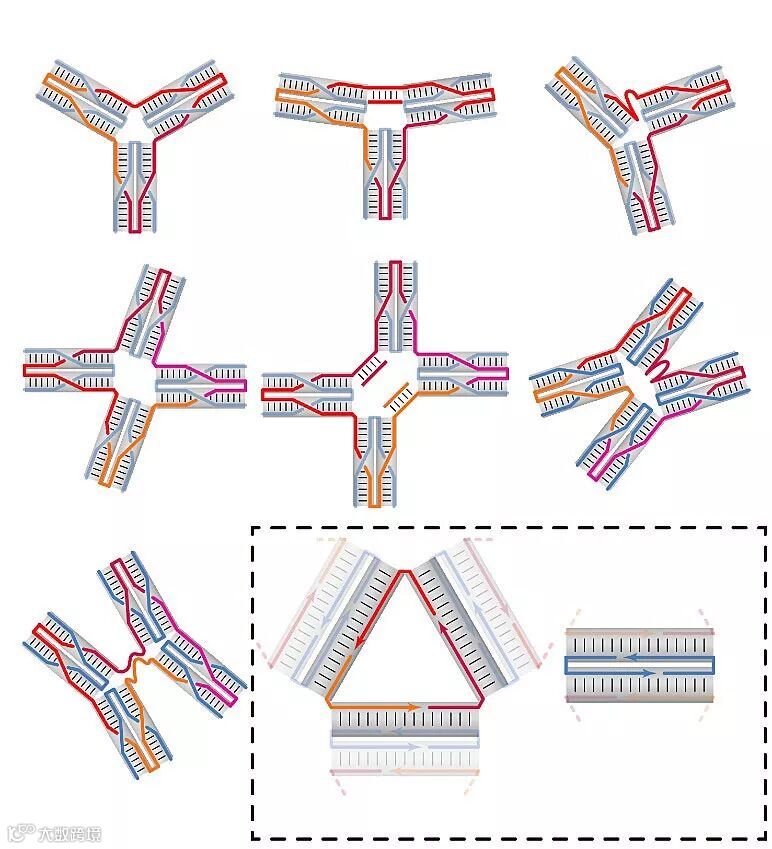 最近,清华大学的魏迪明分子设计课题组和美国普渡大学毛诚德课题组开发出一种通用的不依赖于骨架链的构建方法,成功设计出带有多个结构臂的分支结构单元并构建了一系列DNA线框式结构,如二维阵列结构(2D arrays)、管状结构和多面体结构。