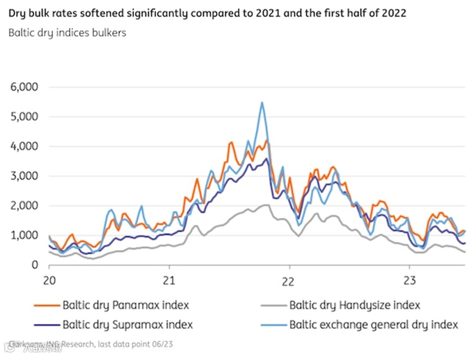 干散货运输承运各种各样的货物,但通常严重依赖全球工业生产。在消费需求疲软和利率上升抑制西方投资