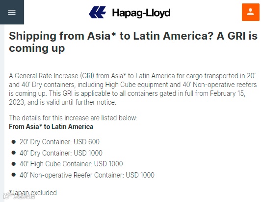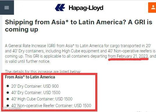 每40英尺高柜:1000美元; 每40英尺干冻柜:1000美元。