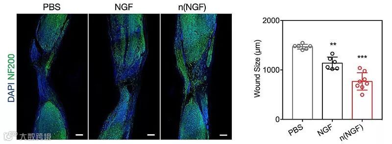 图2. 在小鼠的脊柱损伤模型中,NGF纳米胶囊的有效投递与持续缓释促进了神经修复与再生。