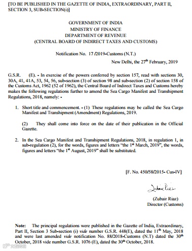 一旦舱单数据发送给海关,任何更改申请都需要经海关核查批准,对于更改收货人或通知方的申请,原收货人需要提供给海关一个“无异议”证明。