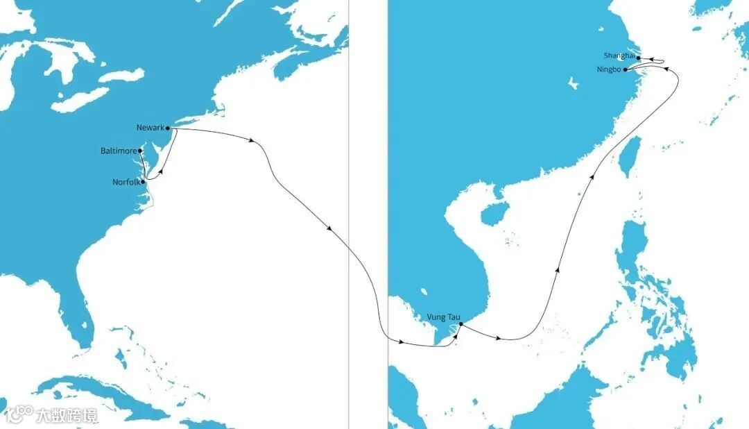 TP20钟摆航线是马士基于2021年6月在需求高峰期启动的每周一班的服务,以瞄准利润丰厚的溢价市场。在启动时,这条环线挂靠越南头顿港、中国宁波和上海港,以及美国东海岸的诺福克和巴尔的摩港,途经巴拿马运河,主要部署运力为4500标准箱的巴拿马型船只。