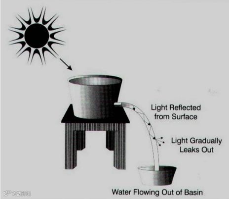 令观众惊讶的是,太阳光也随着水一起发生弯曲——这种现象后来被称为“全内反射”