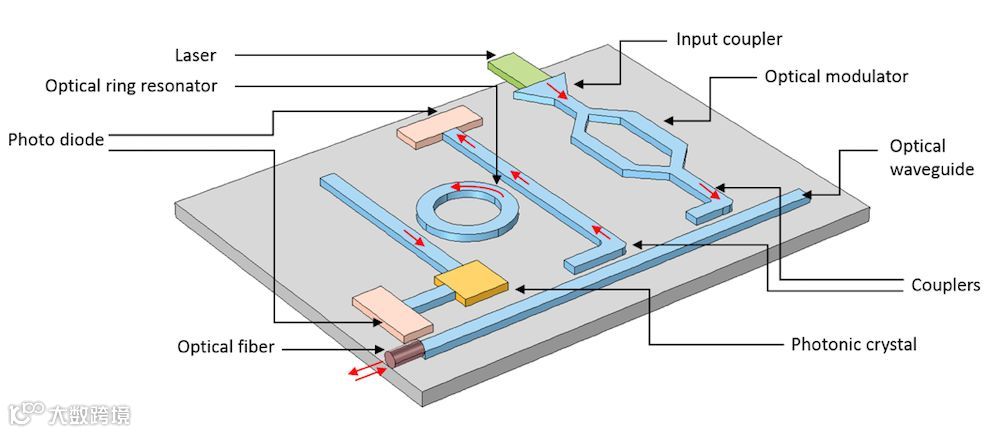输入耦合器用来有效地将来自激光器或光纤的光耦合到基板上的光波导,而定向耦合器用来控制两个平行光波导之间光的耦合。随后环形谐振器应运而生,它与滤光器的作用相同(也就是说,仅支持一个窄带的频率),并可以将两个光波导以相反的方向耦合。