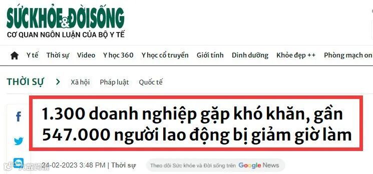 2022年9月至2023年1月底,越南全国50个省市约1300家企业订单减少、面临困难