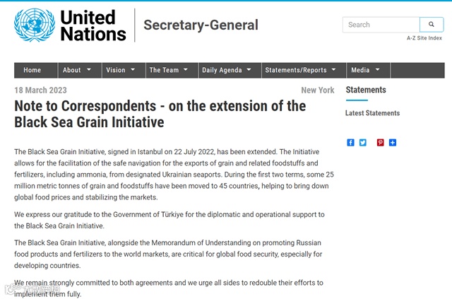 在3月初,为了确保协议的再次延续,古特雷斯曾到访乌克兰商讨协议的续签问题;