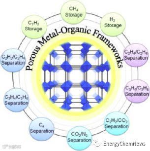 MOFs材料由于具有超高孔隙率,高比表面积(100-10,000 m2/ g),可调控的孔径(3-100 Å),高热稳定性(高达500°C)以及出色的化学稳定性,在气体储存和分离方面的应用前景得到了广泛的认可。在20世纪90年代后期,在MOFs中建立永久性的孔隙得以实现,这开启了它们在吸附方面的应用。而MOFs快速刷新的孔隙比表面积,表明这类材料在气体处理方面极有应用前景。