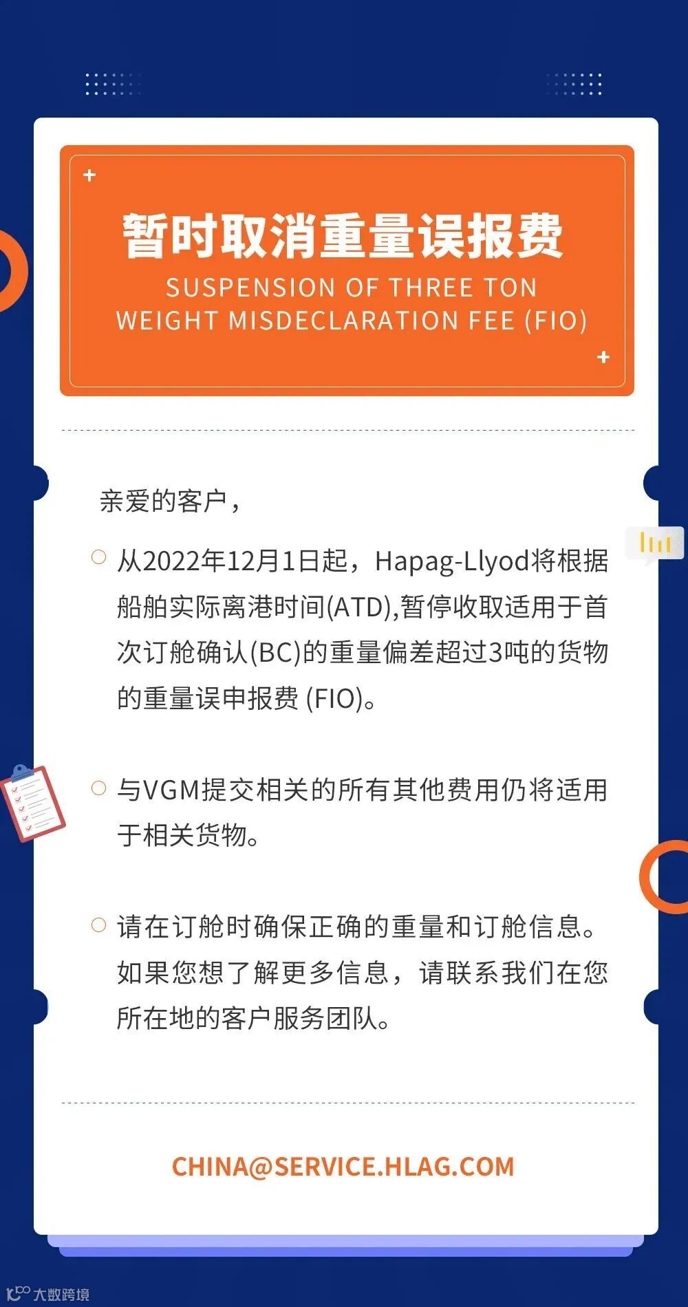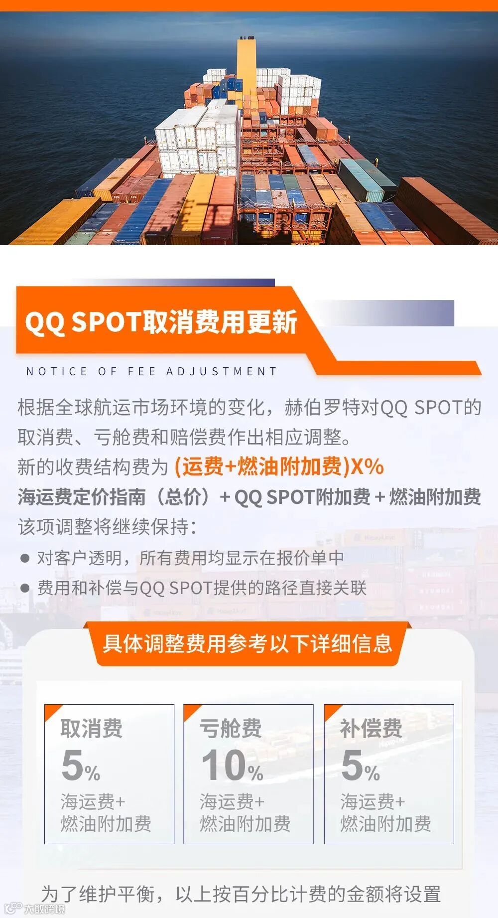 导读:点击蓝字,关注我们取消费、亏舱费和赔偿费调整通知暂时取消重量误报费腾腾网 分享航运的最新资讯