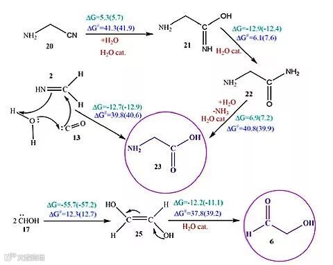 Kumar Vanka等人的工作试图从不同的角度来回答这些问题。他们利用AINR(ab initio nanoreactor)方法进行分子动力学模拟,阐释了HCN和水作为原料生成glycine、cyanamide、glycoaldehyde等基本有机物的过程。先请看下面的短视频。