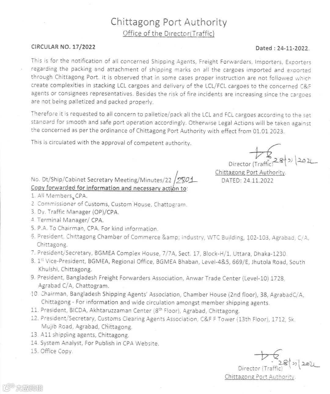 对象:所有通过孟加拉国吉大港(Chattogram)进出口的拼箱/整箱货物