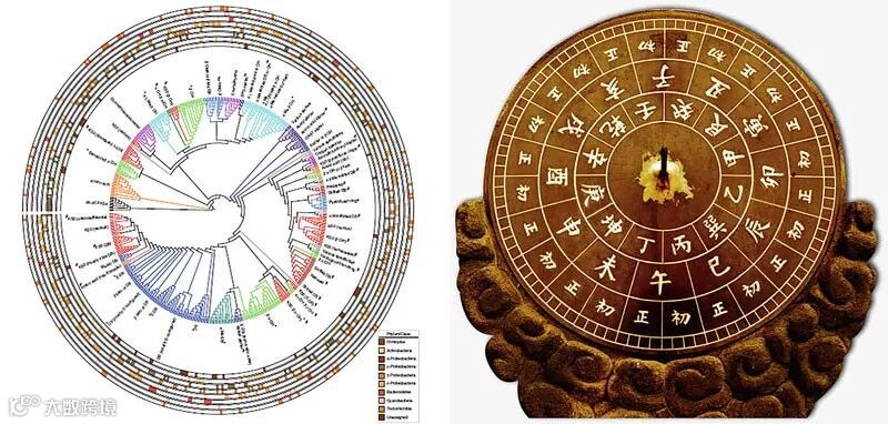 图1. 将已知trans-AT PKSs BGCs中所有KS序列分类构建“日晷式”系统分类发育树(左),对时间进行系统分类的日晷(右)。图片来源:左图来自Nat. Chem. Biol.,右图来自网络