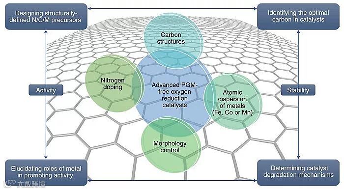 图6. 发展先进M-N-C催化剂相互关联的四个方面