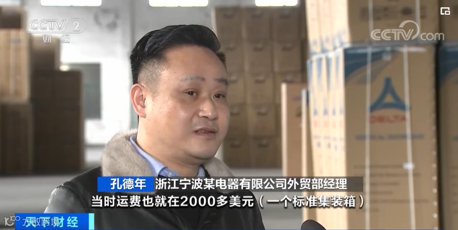 浙江宁波某电器有限公司外贸部经理 孔德年:签订合同的时候,运费在2000多美元一个标准集装箱,等到货做好以后,猛涨到13000多美元。现在运费在2000美元左右,所以客户说可以出货了。