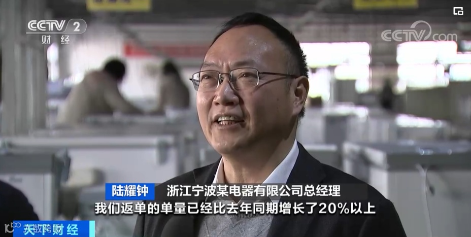 浙江宁波某电器有限公司总经理 陆耀钟:今年前两个月,返单的单量已经比去年同期增长了20%以上,其中有老客户的返单,也有新客户的加盟,今年预计比去年同期能增长30%。