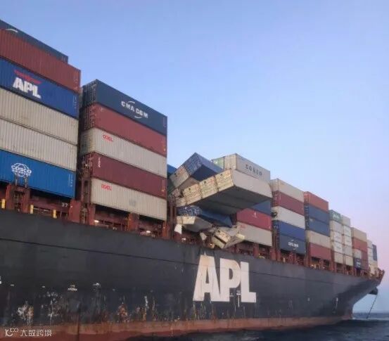 2020年5月24日,“APL England”号集装箱船从上海驶往墨尔本的途中在澳大利亚东海岸遭遇恶劣天气,致使船舶发生了一系列剧烈侧摇,导致50个箱子落水丢失,主发动机关闭。